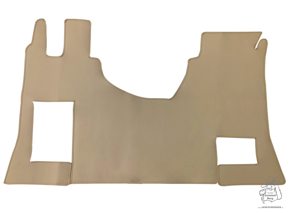 Cremefarbenes, einteiliges Kunstleder Bodenset im Glattdesign für LKW Actros mit Beifahrer Klappstuhl.