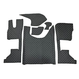 Schwarzes, gestepptes Kunstleder Bodenset für LKW, inklusive Tunnel, Fußmatten und Ablagedeckchen.