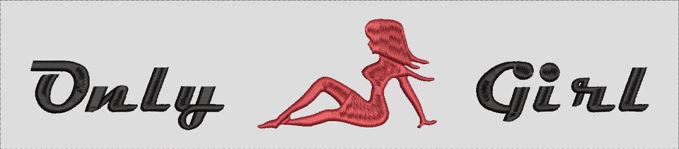 Absperrband in Hellgrau mit schwarzem Schriftzug "Only Girl" und roter Silhouette einer liegenden Frau als Stickerei.