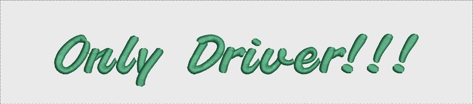 Grün gestickter Schriftzug "Only Driver!!!" auf einem Absperrband.