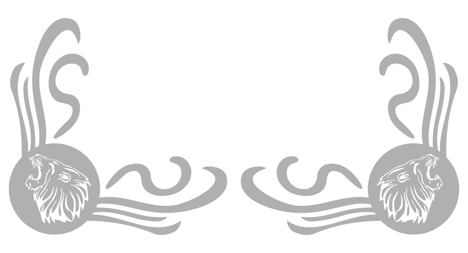Paar Glas-Dekor-Aufkleber mit brüllenden Löwenköpfen und geschwungenen Linien, milchig-transparent.