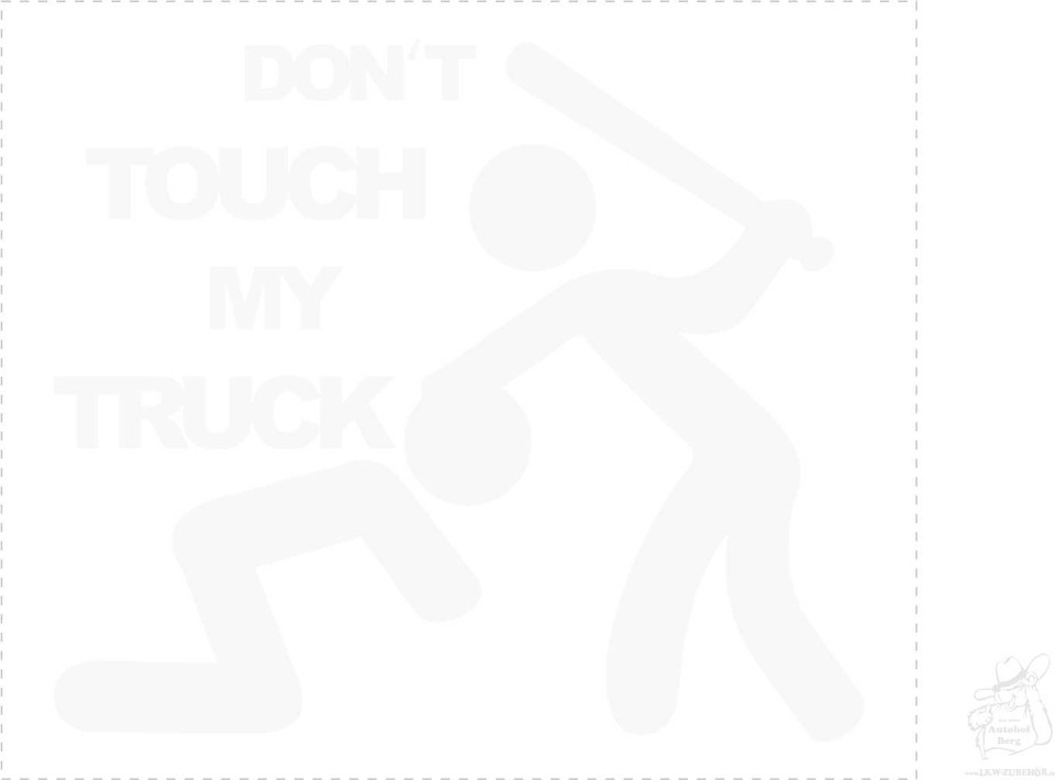 Weißer Aufkleber mit dem Text "Don't touch my truck" und einer Strichmännchen-Grafik mit Baseballschläger.