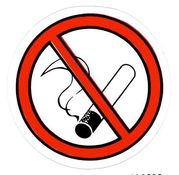 Rundes Nichtraucher-Symbol in Rot, Schwarz und Weiß, zeigt eine durchgestrichene Zigarette.