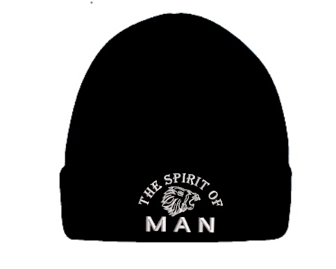 Schwarze Mütze mit gesticktem Löwenkopf und dem Text "THE SPIRIT OF MAN".