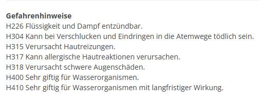 * H304 Kann bei Verschlucken und Eindringen in die Atemwege tödlich sein.