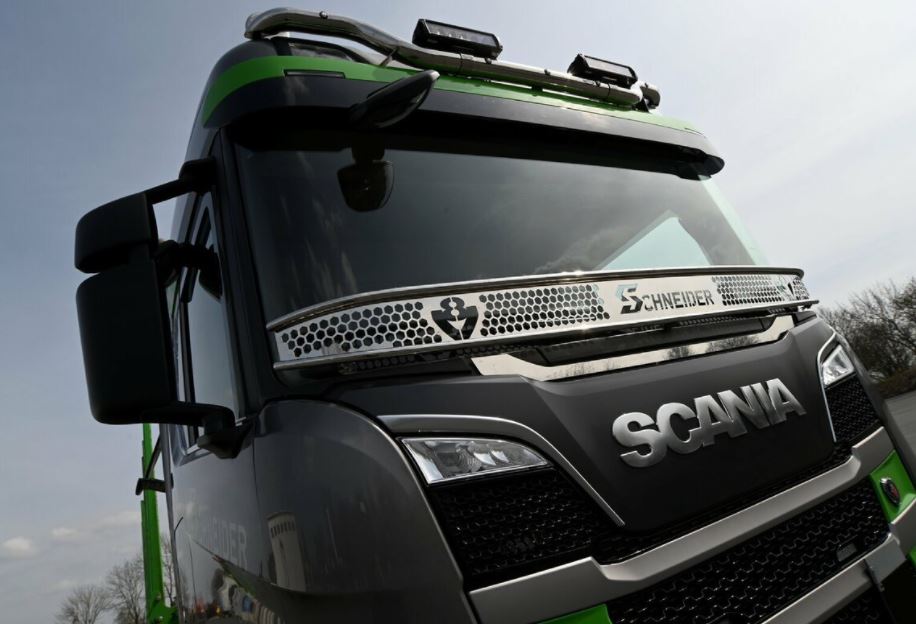 Beleuchtete Platte unter SCANIA Emblem