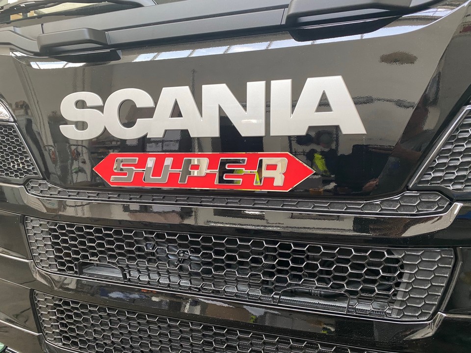 Beleuchtete Platte unter SCANIA Emblem mit Stecker