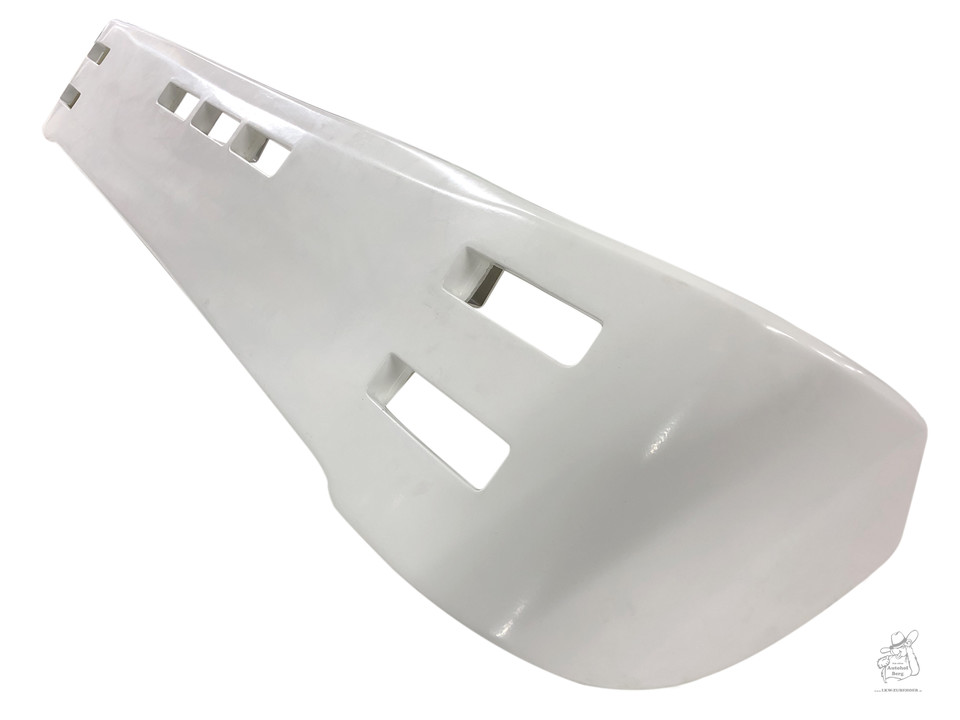 Weiße GFK Sonnenblende für Scania New Generation LKW, mit breiten Lampenausschnitten.