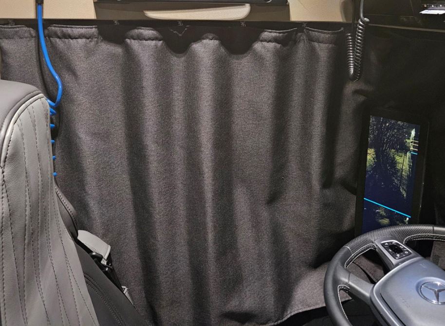 Innenansicht im LKW mit zugezogener Gardine Fahrerseite