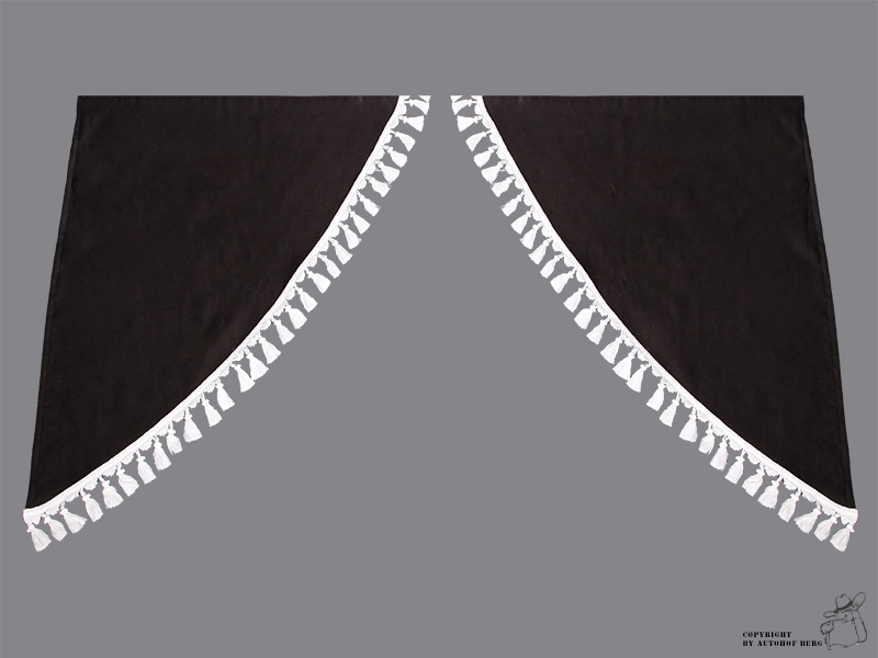 Schwarze LKW-Seitenscheiben-Schals aus Polyester mit weißer Quastenborte.