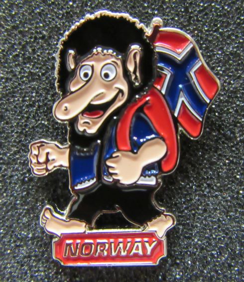 Bunter Emaille-Pin des Scandi Trolls mit norwegischer Flagge und "NORWAY" Schriftzug.