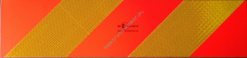 Rote Warntafel mit gelben, reflektierenden Diagonalstreifen und E13-Kennzeichnung.