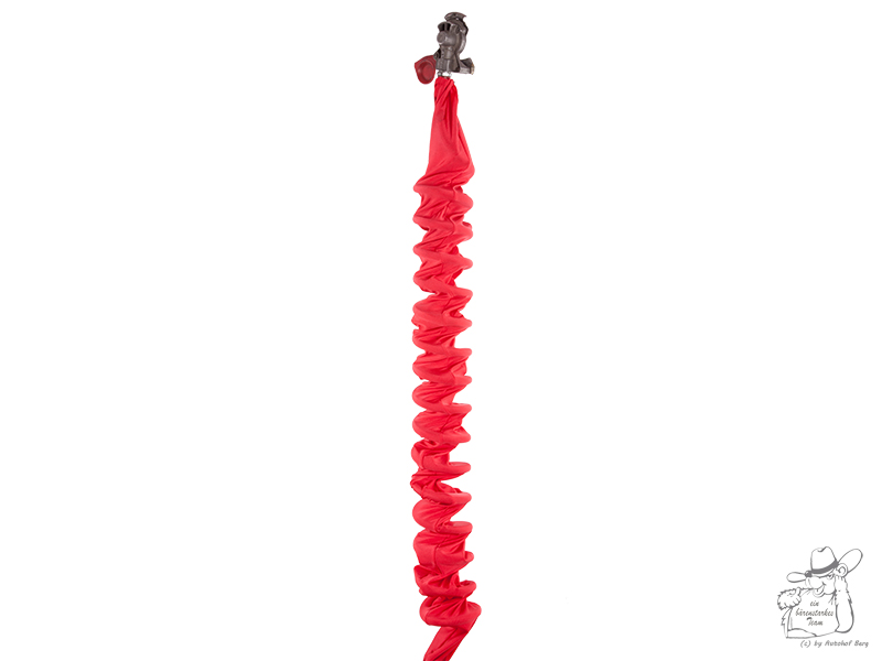 Roter, leicht glänzender Überzug für Luftschlauch aus Polyamid-Elasthan-Gewebe mit Metallanschluss.