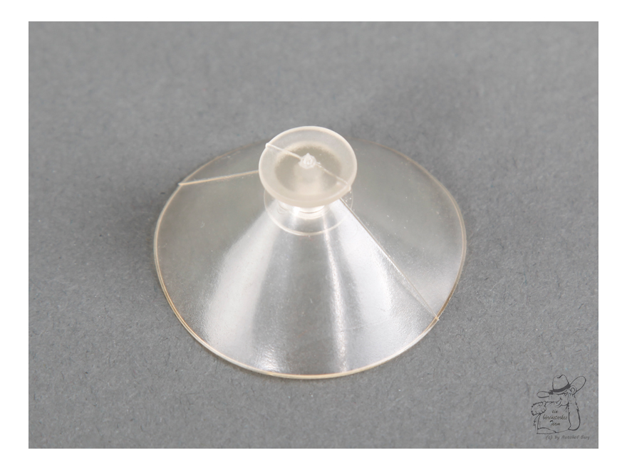 Ein transparenter Sauger aus Kunststoff auf grauem Hintergrund.