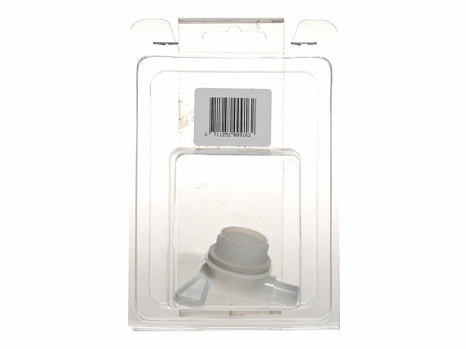 Weißer, schraubbarer Kunststoff-Ersatzhahn für Wasserkanister in transparenter Blisterverpackung.