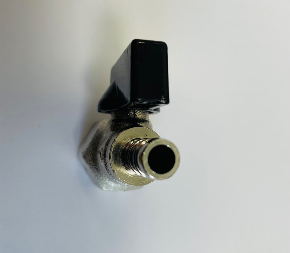 Ersatzhahn für Wasserkanister. Metallhahn mit silberner Oberfläche und schwarzem Hebel.
