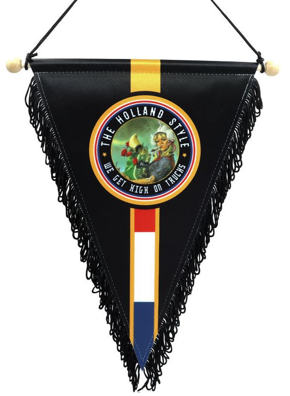 Schwarzer Wimpel mit Fransen, Holland-Flagge und Emblem "Holland Style / High on Truck".