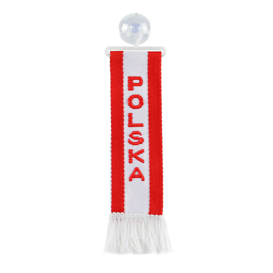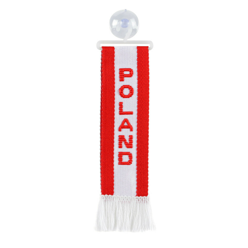Rot-weißer Textil-Minischal mit 'POLAND' Schriftzug, Sauger und Bügel.