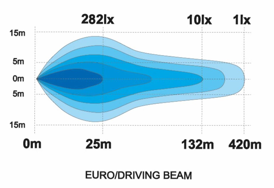 Diagramm des Fernlicht-Abstrahlmusters (EURO/DRIVING BEAM) des Ledson LED Zusatzscheinwerfers.