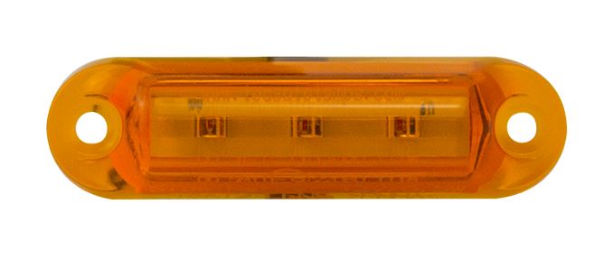 Kompakte, bernsteinfarbene LED-Markierungsleuchte mit 3 LEDs und Befestigungslöchern.
