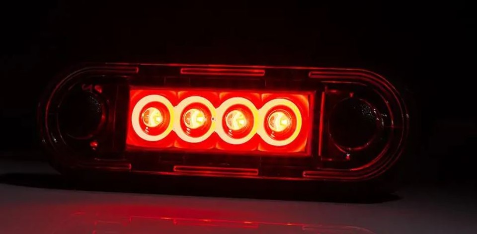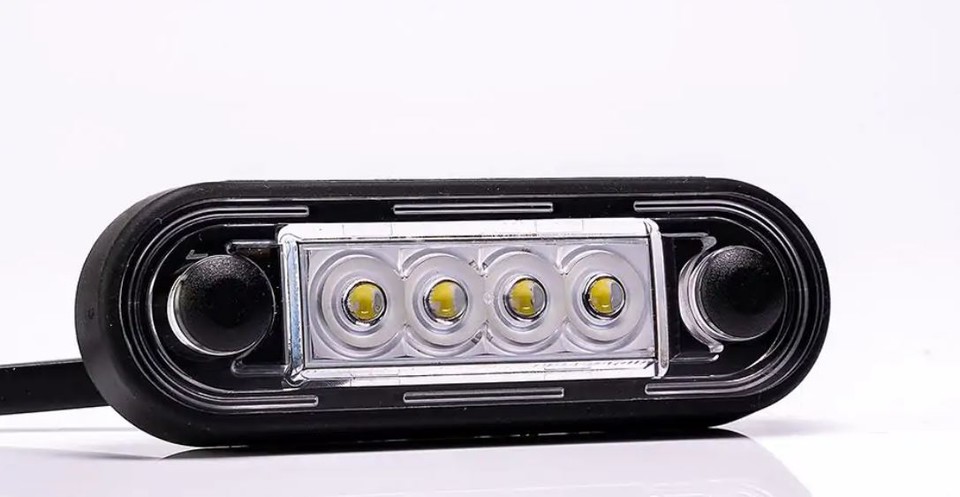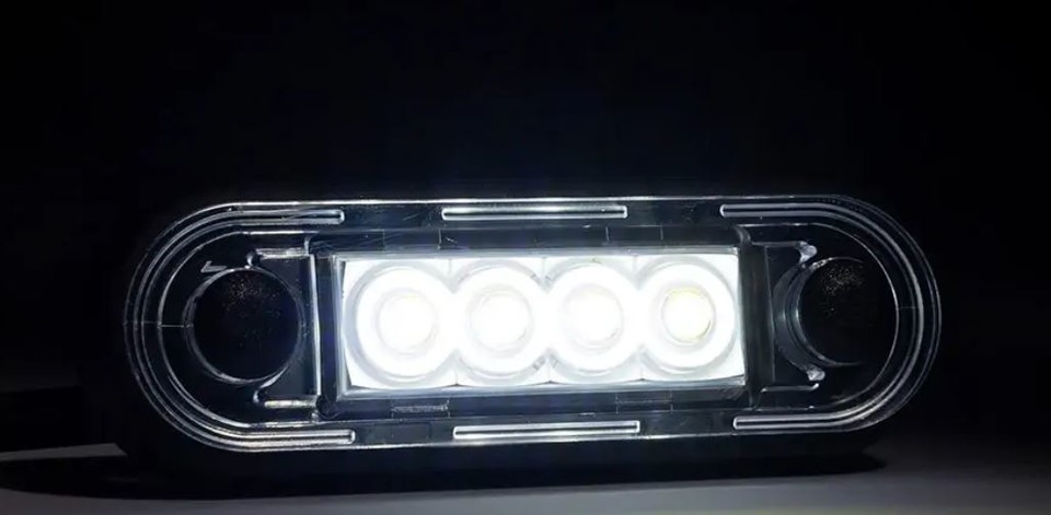 Beleuchtete LED-Begrenzungsleuchte mit vier hellen LEDs und klarem PC-Gehäuse für LKW.