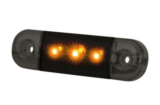 Dark Knight Slim Positionsleuchte mit anthrazit getöntem Glas und leuchtenden orangen LEDs.