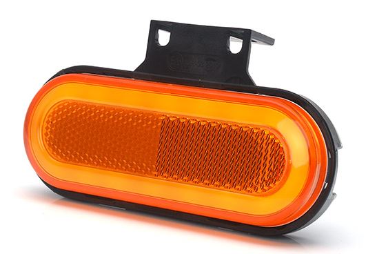 Ovale Seitenmarkierungsleuchte mit Blinker und Rückstrahler in Orange und Schwarz.
