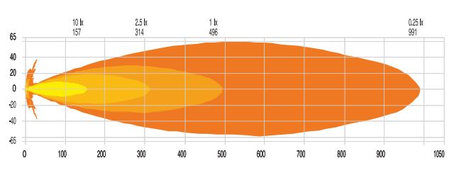 Grafik des optimierten Lichtstrahlmusters des SWEDSTUFF 7" Scheinwerfers.