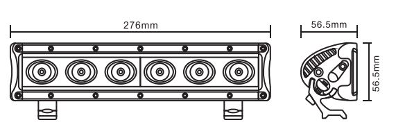 Vorder- und Seitenansicht des SWEDSTUFF LED Balkens mit Linsen und Halterungen.