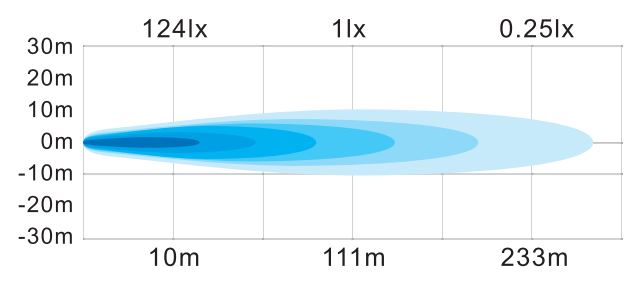 Diagramm des Punktstrahlmusters der LED-Leiste, zeigt die Lichtverteilung und Reichweite.