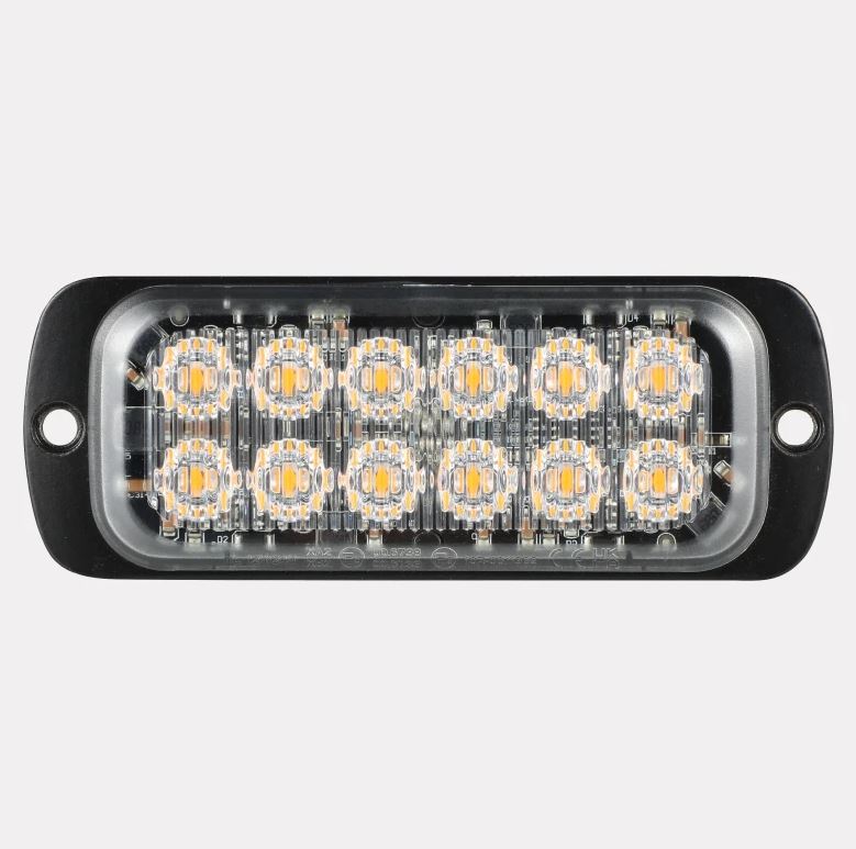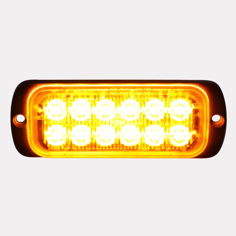 SWEDSTUFF Blitzer orange 12LED. Schwarze LED-Warnleuchte mit klarer Linse und orangefarbenen LEDs.