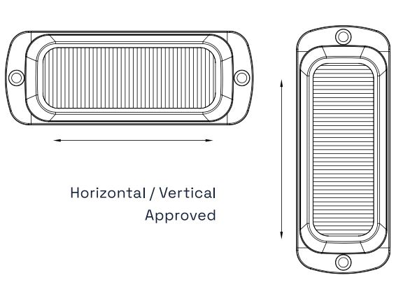 Schematische Darstellung der SWEDSTUFF Blitzer Warnleuchte in horizontaler und vertikaler Ausrichtung.