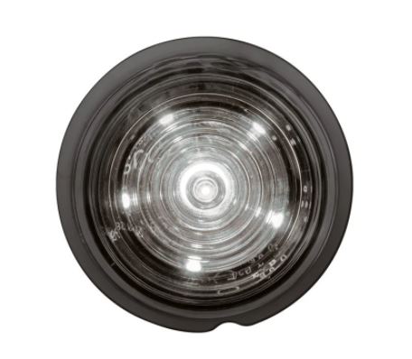 Rundes Viking Ersatzglas Dark Knight mit anthrazit getöntem Glas und leuchtenden roten LEDs.