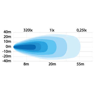 Diagramm der Lichtverteilung der Strands Mini-Arbeitsleuchte in Blautönen.
