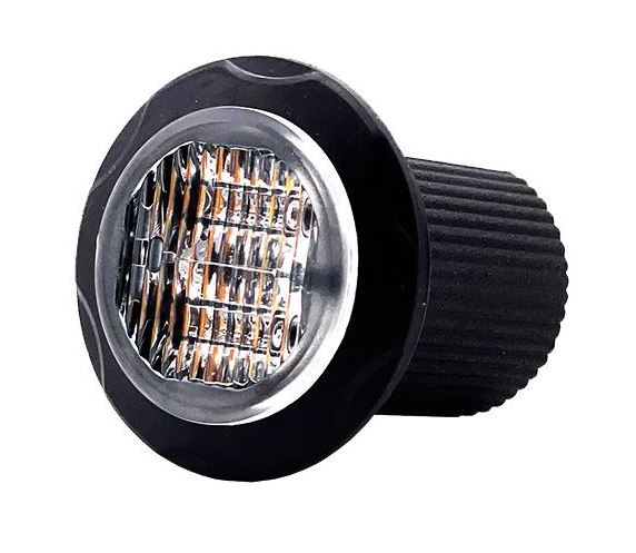 Kompakte, runde "Hide-away" LED-Blitzleuchte mit schwarzer Dichtung und klarer Linse.