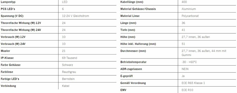 LED Blitzer orange/rund "GLORIA" Glas DARK