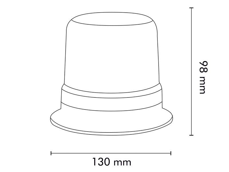 Rundumleuchte als Maßzeichnung, 130 mm breit und 98 mm hoch.