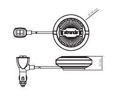 Technische Zeichnung der runden Strands Rundumleuchte Firefly mit Kabel, Zigarettenstecker und Maßangaben.