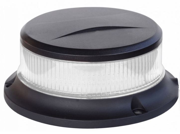 Seitenansicht einer weißen LED Rundumleuchte aus Polycarbonat.