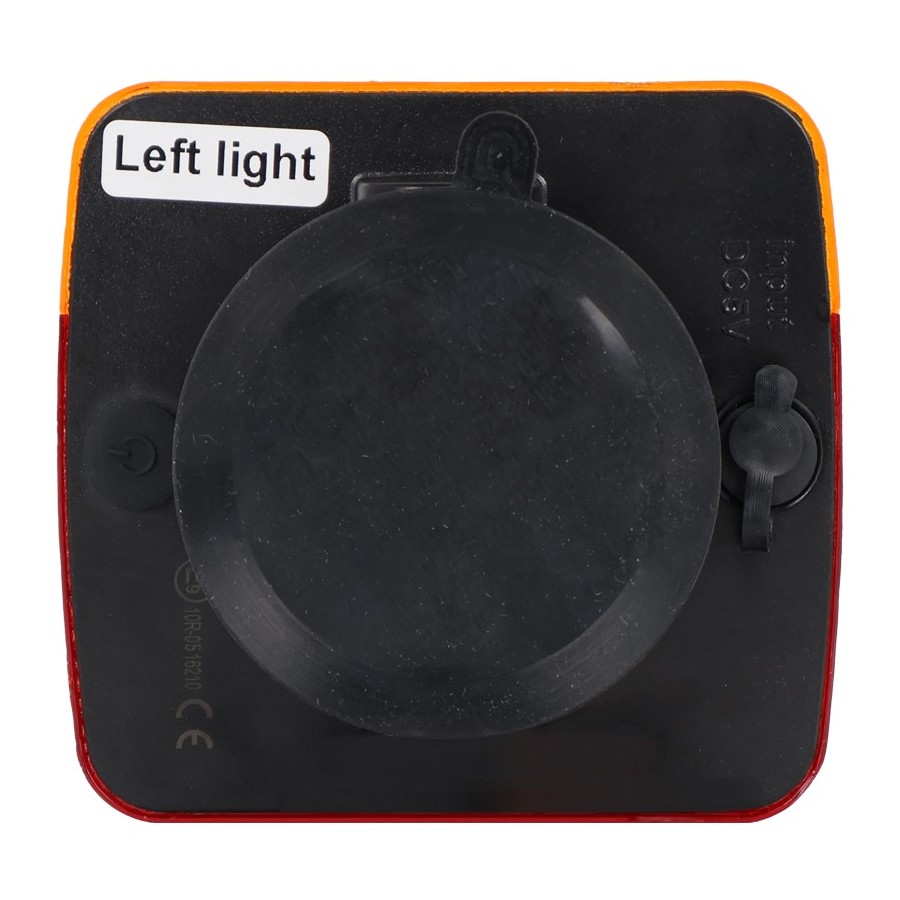 Rückansicht einer schwarzen kabellosen LED-Magnetlampe für LKW mit orange-rotem Rand. Der Magnet und die Aufschrift 'Left light' sind sichtbar.