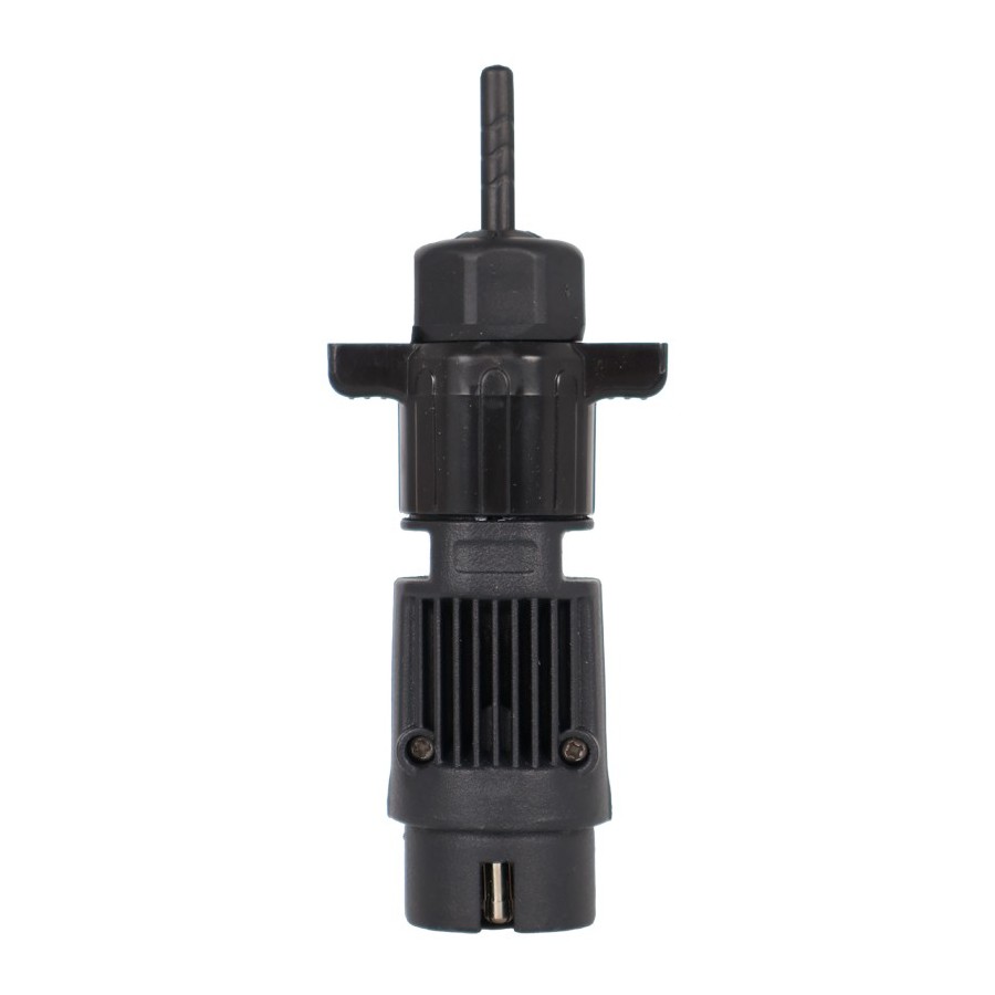 Schwarzer ABS-Stecker für das kabellose LED-Lampenset, mit geripptem Gehäuse und einem oberen Stift.