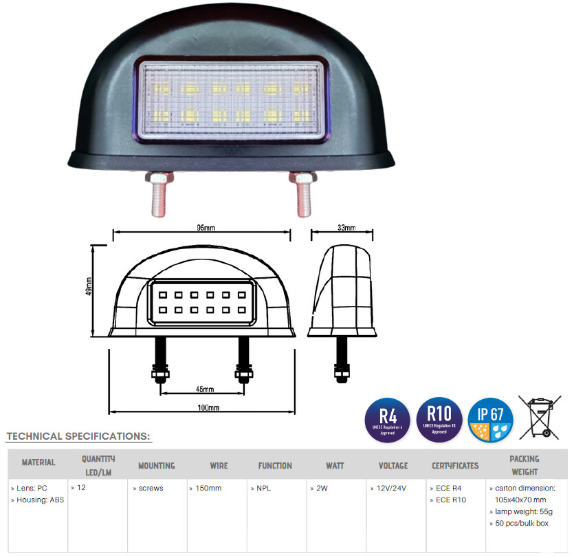 Kennzeichenleuchte 12LED